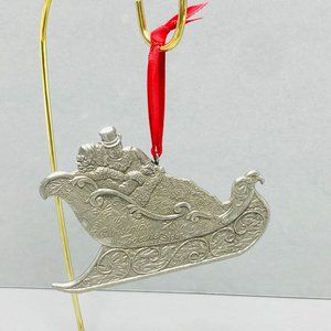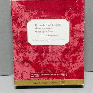 Celebrate your holiday season with "Our Christmas Together Hallmark Keepsake Ornament 1997 Couple Sleigh Ride", a stunning pewter ornament from Hallmark, featuring a couple on a magical sleigh ride.