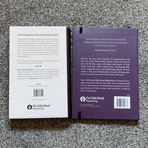 New Amazing Grace Our Daily Bread Devotional Collection, 366 day devotional book plus Prayer Journal set. Devotional has leather-like cover and ribbon bookmark, journal is paperback and has lined pages with elastic page marker.