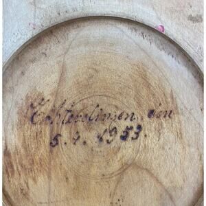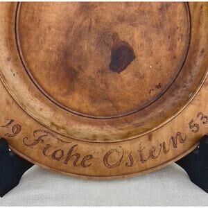 Written in German is "Our Daily Bread" " Happy Easter 1953" with a hot iron. Most likely from the Amish or Pennsylvania Dutch. Unsure of the type of wood but it is in great condition. Measures 10.25" wide, signed on the back.