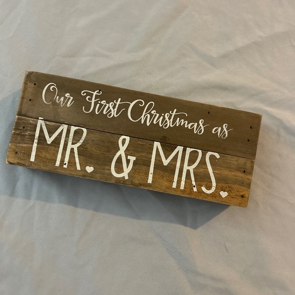 Wood. Rustic painted design. Our First Christmas as Mr. & Mrs.