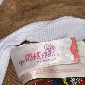 Our Generation 18" Doll by Battat Black Hair Brown Eyes Christmas Outfit Shoes. Good pre-owned condition. There are a few marks on her body (see photos). New Outfit/Hair Clips. Doll stand not included.