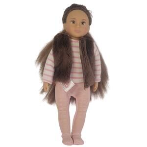 Petite and charming, this 7-inch Our Generation doll by Battat is styled in a pink striped outfit with a chic faux fur vest. Perfect for doll enthusiasts and for adding to any miniature doll collection. With detailed features and a friendly expression, this doll is great for play or display. Packaged and shipped from a smoke-free environment. Check my Feedback and other listings.