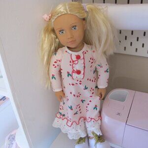 Our Generation Cheerleader Cheer Doll with SweetHoney Pajama gown EUC, Comes with cheer outfit, shoes, pom pom's, hair bow, and also comes with a Christmas holiday SweetHoney Pajama gown (candy cane print). Smoke free, pet free home, ships asap, thank you for looking.