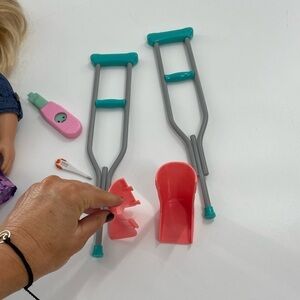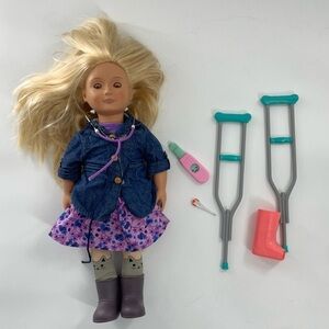 Our Generation OG 18” Doll Doctor Sick Helper Cast Crutches. In excellent barely played with condition. Great doll in american girl style. Comes as is with accessories shown.
