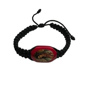 Our Lady of Guadalupe Bracelet Black Knotted Rope Red Wood Charm Adjustable NEW