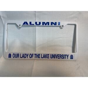 Our Lady of the Lake University ALUMNI license plate holder//frame white/blue -NEW