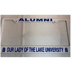 Our Lady of the Lake University ALUMNI license plate holder white/blue -NEW