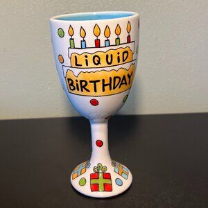 Our Name is Mud LIQUID BIRTHDAY Ceramic Goblet ~ Hand Painted by Lorrie Veasey
