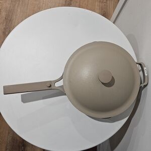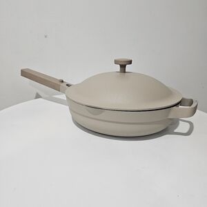 New Without Box. the handle has some chipped paint. and under the pan, there is some light discoloration. as shown in pictures. Missing Spatula.