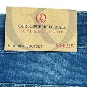 Our Republic for All High Rise Bootcut Jeans Size 22W Embellished Pockets. With a high-rise and bootcut style, these jeans are both comfortable and flattering. The embellished pockets add a touch of personality.