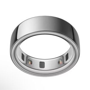 Track health with the Oura Ring 4. Sleek silver design. Monitors sleep and activity.
