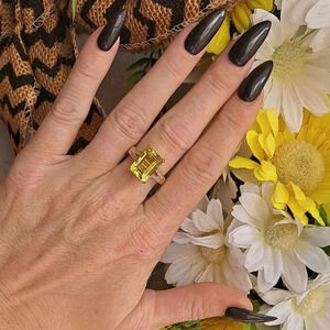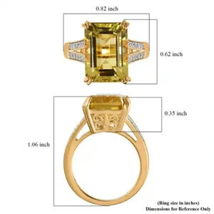 Such A Simple, Elegant & Classic Beauty! Natural Ouro Verde Quartz And Accent Of Natural White Zircon In A Split Shank Style Ring. Set Perfectly In A 14k Yellow Gold Vermeil Over 925 Solid Sterling Silver.