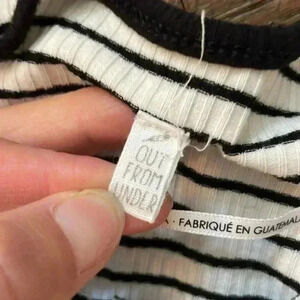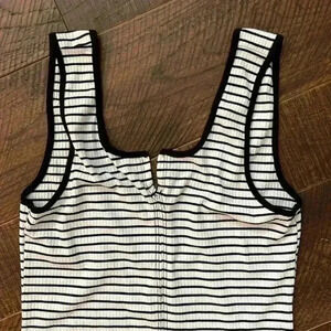 Black and white bodysuit. slightly ribbed style. No snap closure - pull on style. In excellent pre owned condition with o flaws.