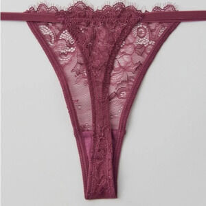 Out From Under Butterfly Kisses Lace Thong, Burgundy, XL, NWT