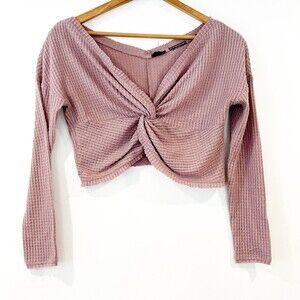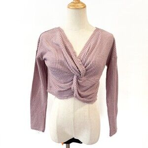 Out From Under Lavender Purple Thermal Waffle Crop Top Twist XS