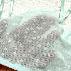 Out From Under Urban Outfitters Mint Lace Bralette with Hearts.