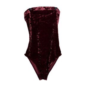 Keywords: Urban Outfitters, maroon bodysuit, crushed velvet, women's wear, medium size, polyester blend, spandex fabric, snap closure, Indonesia made, Out From Under, maroon top, velvet fabric, women's bodysuit, witchy, whimsigoth, goth