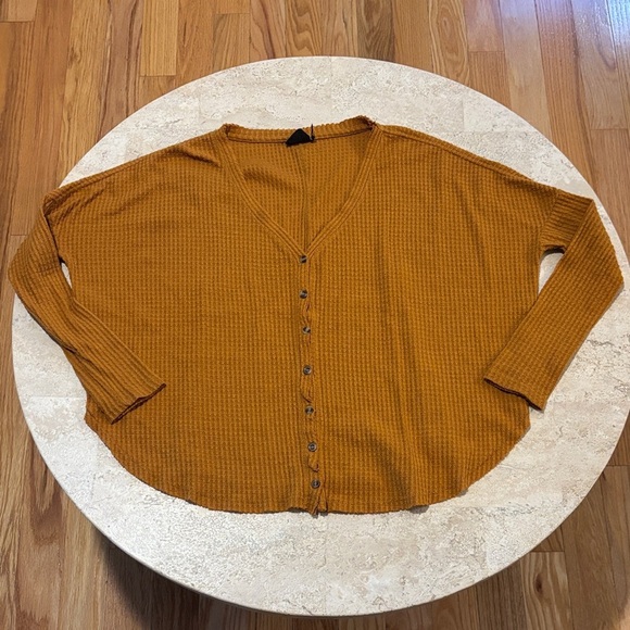 Out From Under/ Urban Outfitters size Small oversized Mustard Button-Up Cardigan, perfect color for fall and layering! Waffle detail