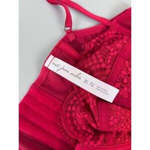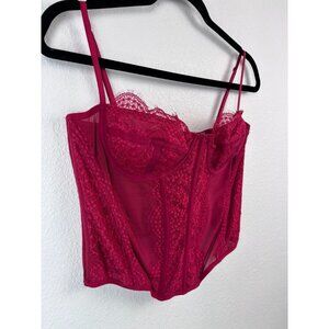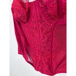 Out From Under by Urban Outfitters brand women's size XL red lace corset top. In excellent condition, little to no sign of wear. Lightweight fully boned with unlined underwire cups. Has back hook and eye closure. Underarm to underarm measures 16" laying flat.