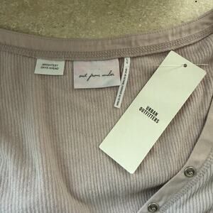 Out From Under Womens Large Henley Top Vneck Short Sleeve Lavender NWT UO Tee