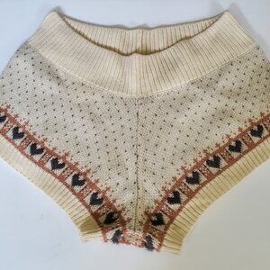 Out From Under (sold at Urban Outfitters) Catching Feelings print Fair Isle style knit micro shorts. Size XL. Cream/tan with gray hearts. Sweet and sexy. Brand new, never worn. New condition, no tags.