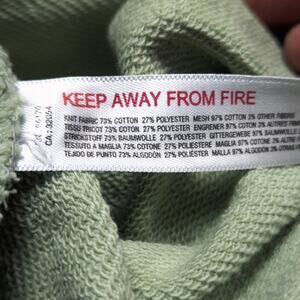 Out From Under women’s sweatshirt by Urban Outfitters in a soft sage green with white mesh paneling and tie hem detail. Women’s size medium. Lightweight cotton blend with snap neckline and curved seams that add a sporty edge. The relaxed fit and sheer contrast texture give it that casual, lived-in energy of early 2000s street style.
