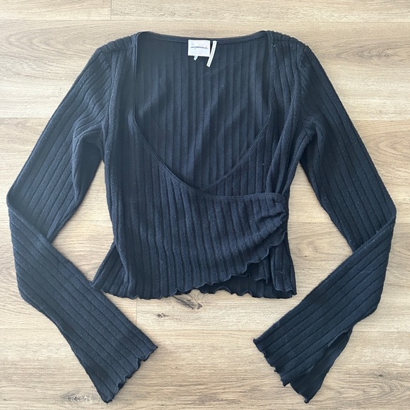 Out From Under,Urban Outfitters Black Ribbed Wrap Crop Top - Size: Small- NWOT