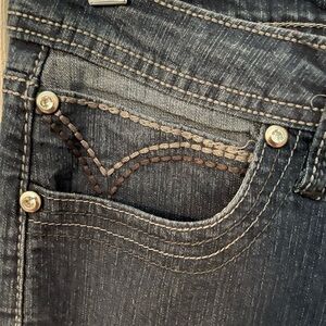 Out Jeans Stretch Capris Dark Wash denim. Excellent condition. Rhinestones buttons.