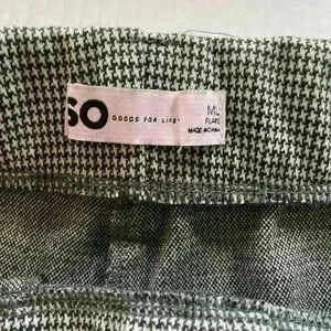 Elevate your work wardrobe with these stylish black flare pants from SO Goods For life. The pants feature a self-belt design and are made from a comfortable polyester blend material. Perfect for any occasion, these dress pants are a must-have for any woman's closet. The size is ML and the pants are NWT.