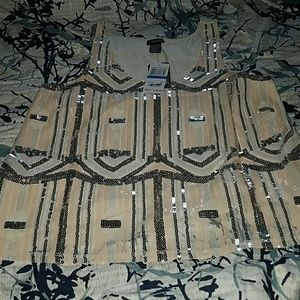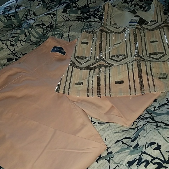 Peach silver and white sequence XL top new.peach jeggings type pants size 14. 63% cotton 34% polyester 3% spandex new.i am selling as a outfit