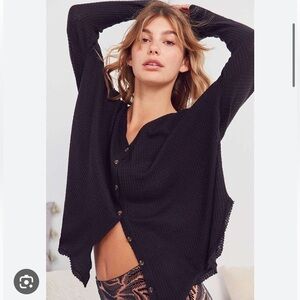 Look so good without even trying in this effortlessly versatile thermal button-front top by Out From Under. Long sleeve, slouchy fit silhouette with dropped shoulder seams, shirttail hem and button closure down front. Wear it as many ways as you can think of – as a cardigan, tied in front, layered with dresses, tucked into denim or even backwards for a cool take on a silhouette we love.