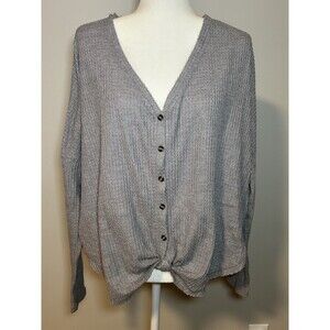 Out from Under Urban Outfitters Jojo Thermal Oversized Shirt Size Medium Gray Waffle Knit