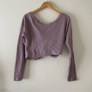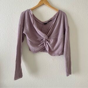 A long sleeve cropped top by Out From Under. Plunging neckline. Cropped above the waist. Finished with a twist detail at the bust. Only available at Urban Outfitters.