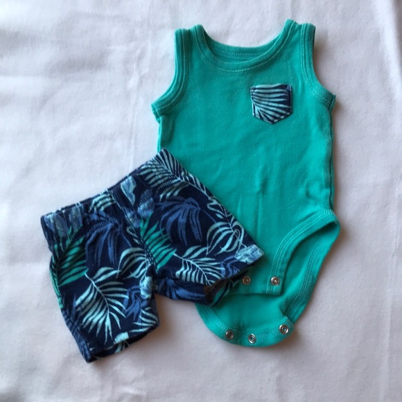 Teal and floral print outfit. Baby tank and shorts. Summer