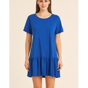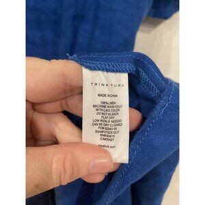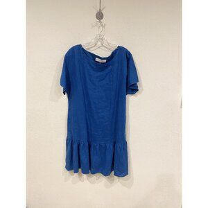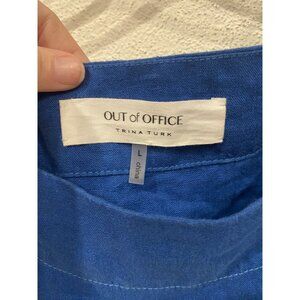 Out of Office Trina Turk Dress Womens Large Blue Linen Ruffle Hem Short Sleeve Summer