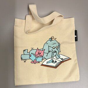The Out of Print Elephant & Piggie small canvas tote bag is a stylish and unique accessory that features a cream exterior color and a canvas material. This tote bag is perfect for anyonewho appreciates a small size and a fun, playful design with Elephant and Piggie from the classic book series. The Out of Print brand ensures a high-quality and on-trend addition to any wardrobe.