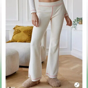 Out From Under Fleece Flare Pants Urban Outfitters Cream White and Red Pull On