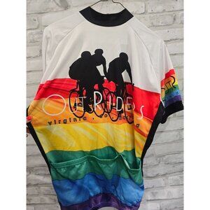 OutRiders CYCLING LGBTQ Gay Ride Pride Rainbow Jersey Small XL Full ZipDMV= DC, Maryland, Virginia