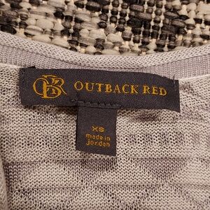 outback red long open Cardigan. gray and white design. size xs. See pictures for details. Color may vary slightly because of lighting. Item comes from a smoke-free, pet friendly home. If you have questions, please feel free to send me a message. Check out my other listings and make a bundle for a better deal!
