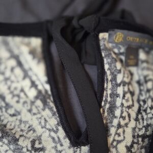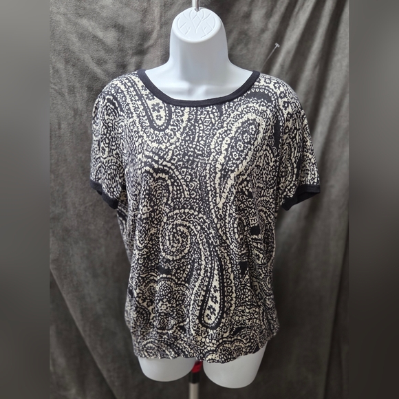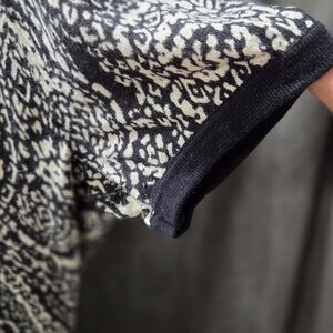 Elegant women's sweater featuring a classic black and white paisley design. Perfect for any occasion. Tie back.