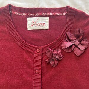 Outback Red Cardigan Ladies P Large Red Button Down Pockets Ribbon Flowers read