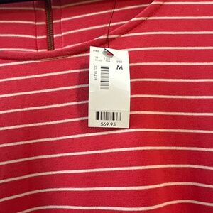 This is a red and white stripe short sleeve dress without a belt. It is a dress from The Limited.