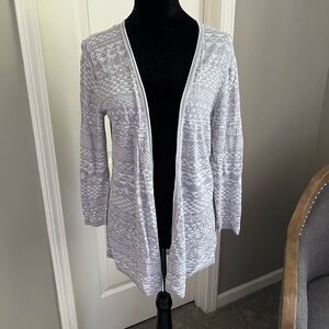 Embrace effortless style with this Outback Red cardigan, featuring a relaxed fit and a mid-thigh length for versatile layering. Crafted in a subtle gray marled knit, this open-front sweater offers a casual drape and full-length fitted sleeves, perfect for any occasion.