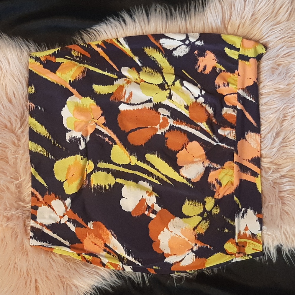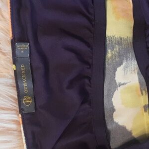 Outback Red Halter top, size medium, measurements laying flat and at rest are chest 14.5", waistband 16". Deep purple, burnt orange, yellow and white florals. Very pretty with built-in cup, excellent preloved condition! Bundle and Save!!