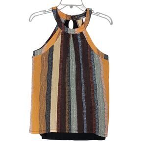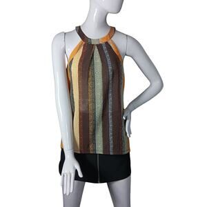 Outback Red Halter Top Blouse Size Small Earthy Tones Colorblock Black Back