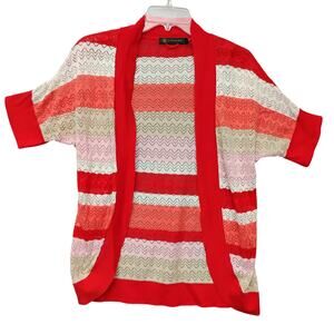Outback Red Open Knit Cardigan Size XS Red and Beige Striped Short Sleeve