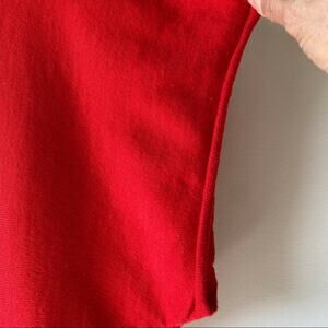 Features short dolman sleeves, scoop neck, and ribbed hem in a vibrant red color.