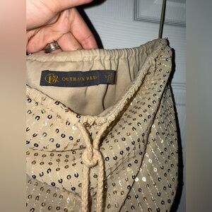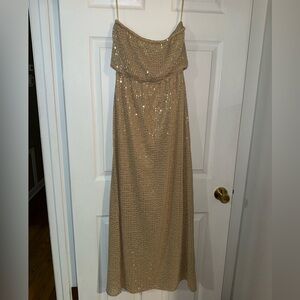Outback Red Strapless Tan Gold Sequin Dress Sz Small Rope Tie Top Stretch Waist