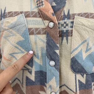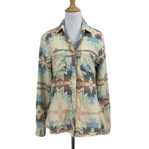 OUTBACK SHIRT WOMENS S SMALL SAND BRIANNA AZTEC FLANNEL PEARL SNAP BUTTON TOP