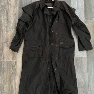 From Outback: The Low Rider Duster is a waterproof full-length slicker, made to withstand all climates. Made from treated cotton, this oilskin won’t quit!